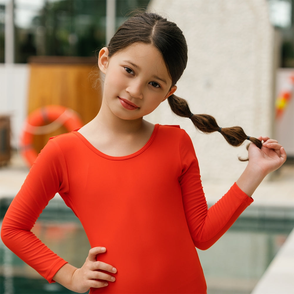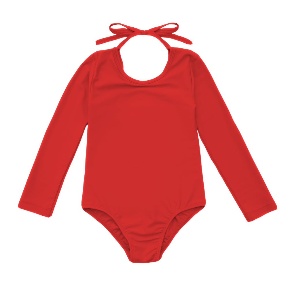 A classic silhouette of a timeless swimsuit designed for comfort and confident movement in the water. Made from vibrant, pool-safe fabric, it helps maintain rich color even after frequent swims. Finished with a soft ruffle back detail and an adjustable tie-back for a secure and comfortable fit.