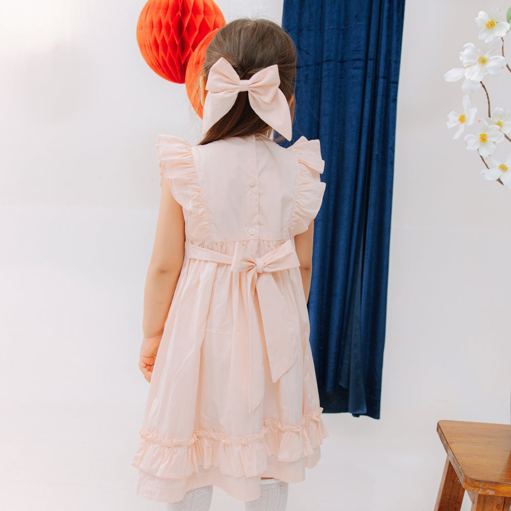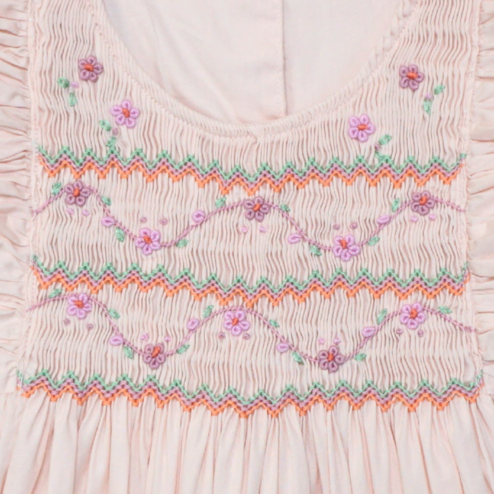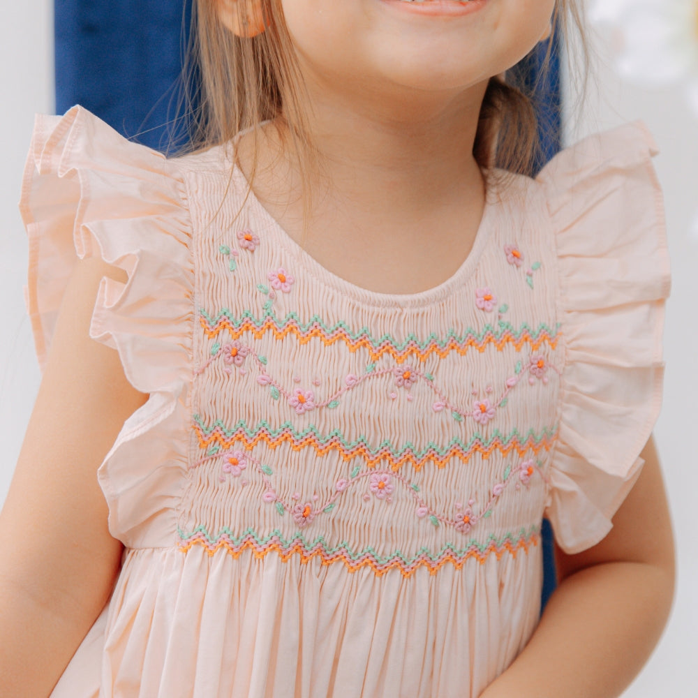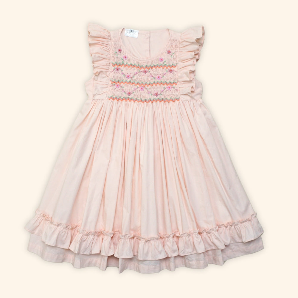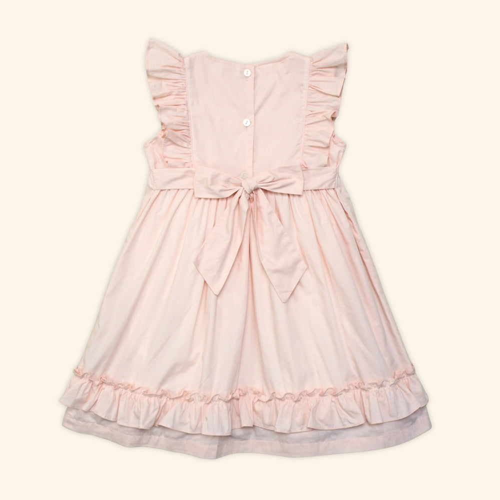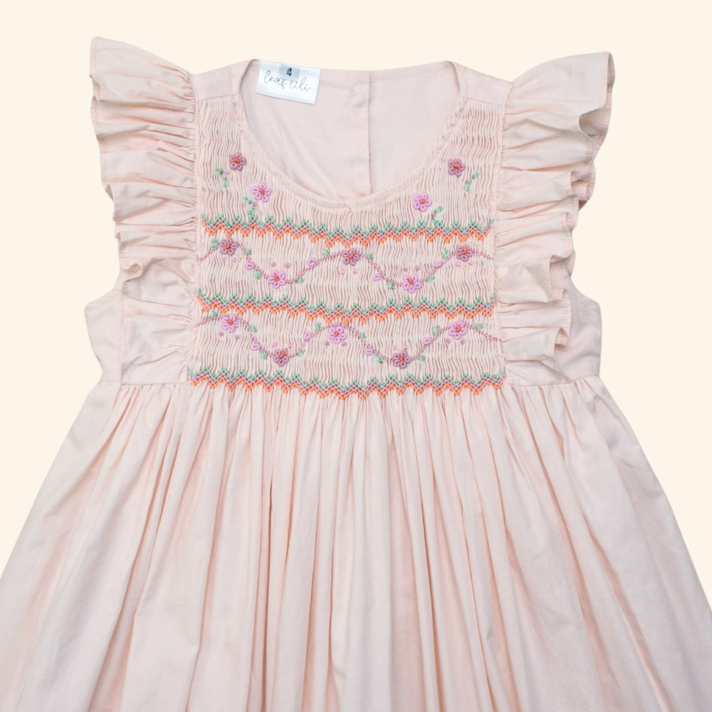 Designed in a clean, plain silhouette, this dress is elevated by hand-smocked embroidery on the chest, adding subtle texture and artisanal charm without overpowering the look.