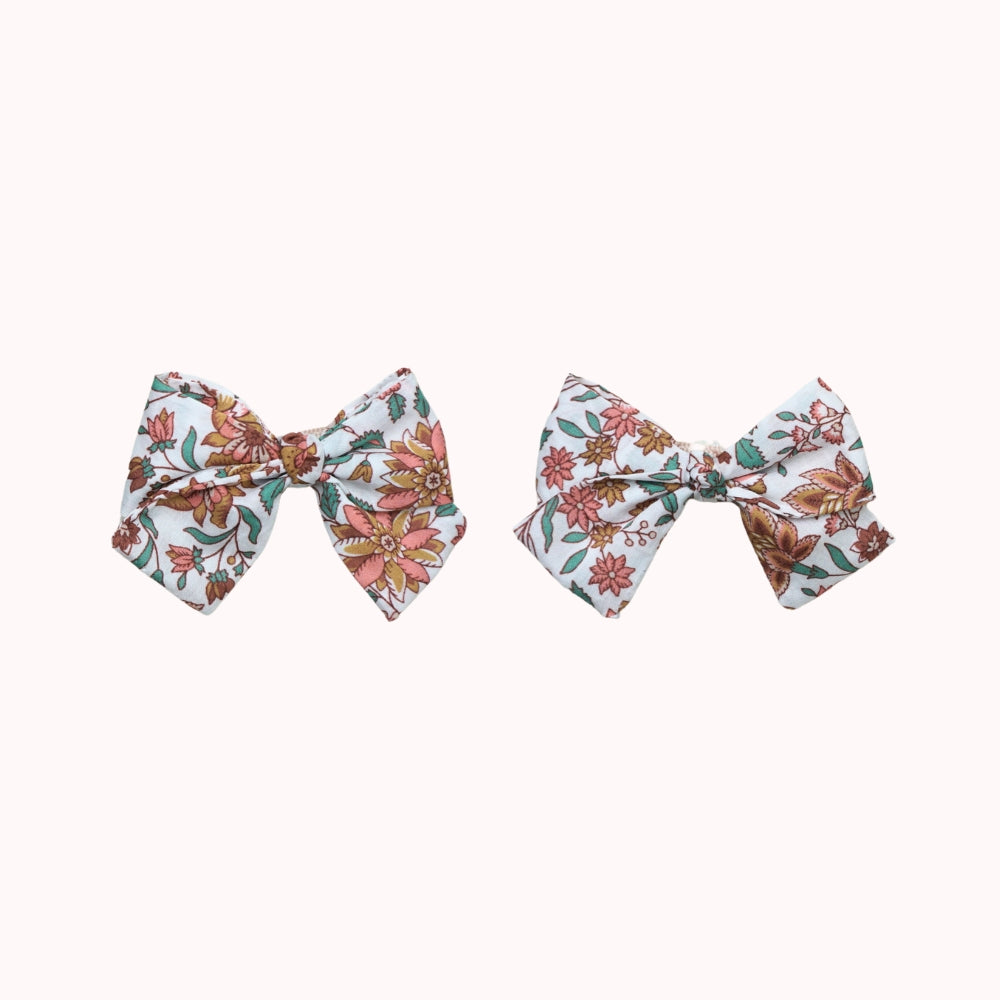 Each floral-print bow is thoughtfully designed to bring grace and versatility to both everyday moments and special occasions, from the flowing long-tail bow for a dramatic statement and the polished large classic bow for refined sophistication, to the versatile medium classic bow set, the elegant medium classic tail bow set, and the dainty petite hair clip set for a subtle, delicate finish.